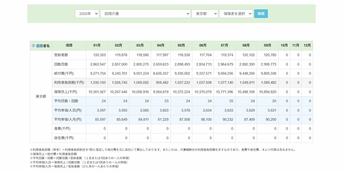 厚労省の最新データ2025年9月分を取込み、ウェルケアのサイトへ反映を完了しております。貴事業所との比較や諸々の検証等にご利用ください。