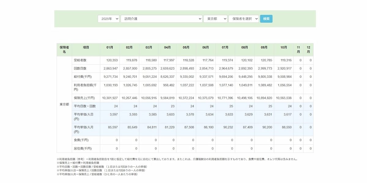 厚労省の最新データ2025年10月分を取込み、ウェルケアのサイトへ反映を完了しております。貴事業所との比較や諸々の検証等にご利用ください。